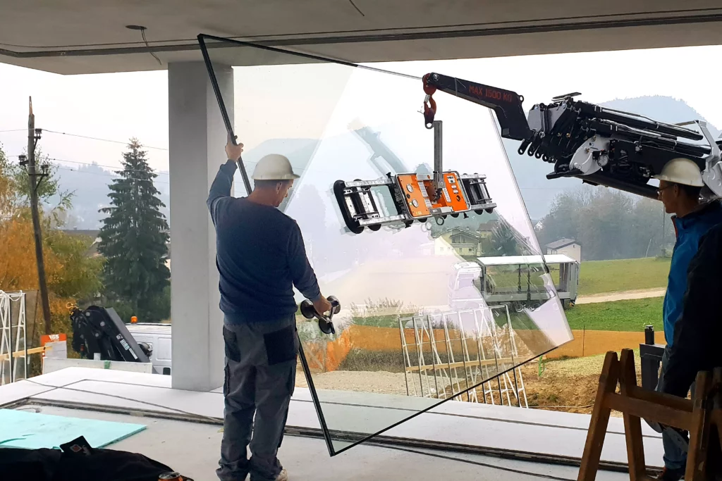 Uchwyt wyposażony w mechanizm obrotu i nachylenia tafli szkła